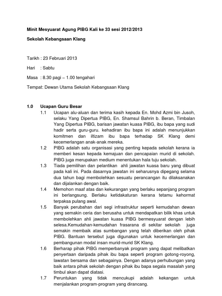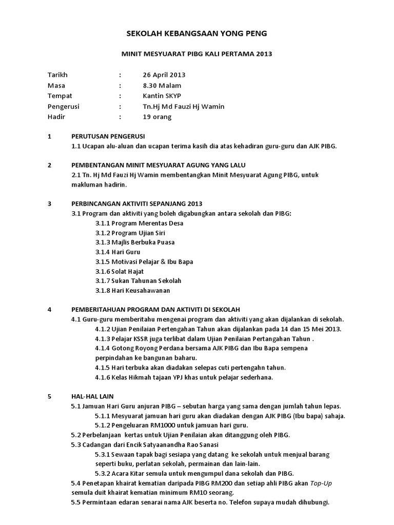 Contoh Minit Mesyuarat 1 Pibg Pdf