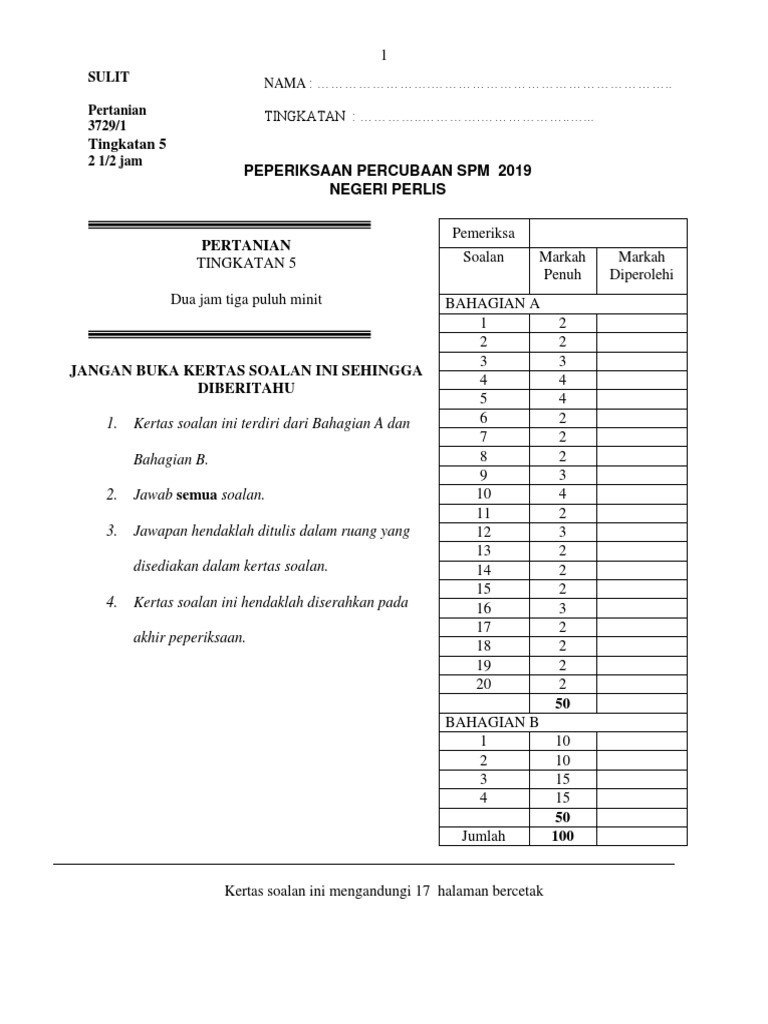 Soalan Ppc Spm 2019 Pertanian Tg 5 Negeri Perlis 2019 Pdf